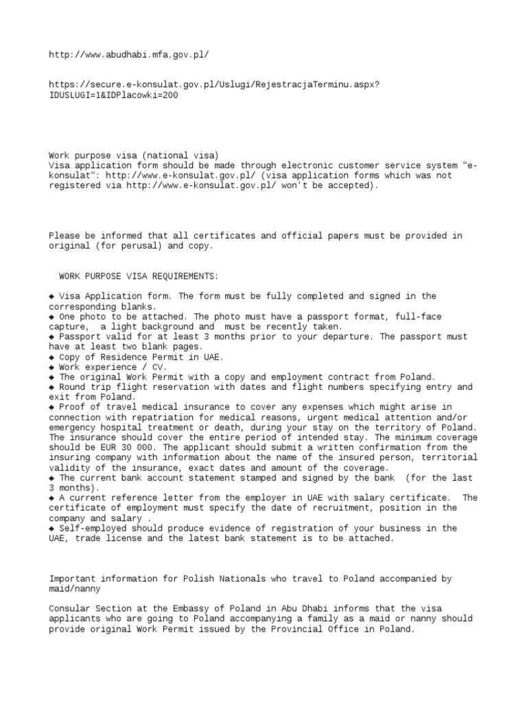 Generally, a separate pole visa application form is required for each applicant. Customers willing to work in poland may apply for a respective visa category based on the invitation 1. Duly filled polish visa application form. If you've obtained a your employer must inform you about any progress in the application or prolongation procedures, and about any events or conditions affecting your work. 2 passport format photos with a light background.